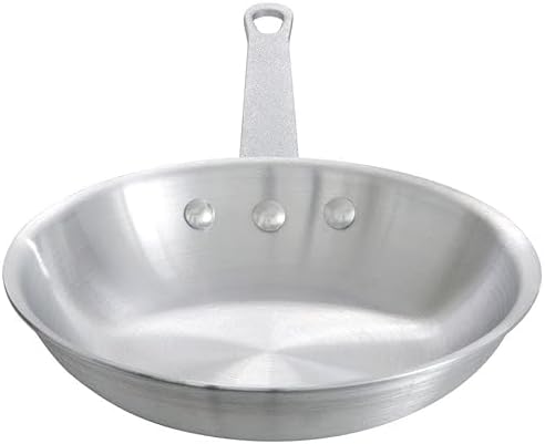 Cook delicious meals with absolute ease and skillfully brown, sear, fry, or scramble your menu items in this 12”Aluminum Frying Pan with Plated Iron Riveted Handle Ideal for making low acidic foods such as mushrooms, broccoli, and cauliflower, this item features gently sloped sides that are perfect for turning, flipping, and removing delicious vegetable medleys from your pan. Its aluminum construction is also built for dependable use yet provides your kitchen with a lightweight, economical option that won't break the budget. Plus, a large hanging hole at the end of the aluminum handle makes it easy to store. Each piece cookware line is designed not only to meet your needs, but to meet the needs of your budget as well. Trust for your next economical and dependable addition to your commercial kitchen! Width Plated Iron Riveted Handle, Fry Pan, Aluminum.