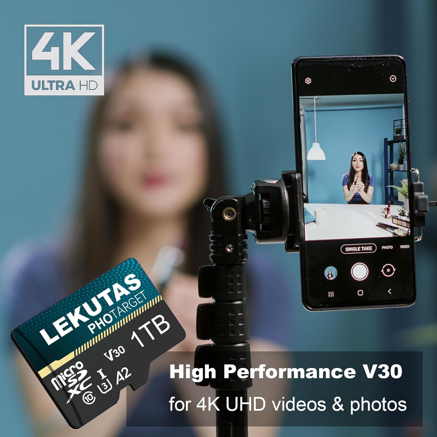 | Special Feature | 999GB Micro SD Memory Card supports UHS-I, U3, Speed Class 10, Video Speed Class 30 (V30) - 4K and 5K UHD-ready with UHS Speed Class 3 (U3) and Video Speed Class 30 (V30) (Full HD (1920x1080), 4K UHD (3840 x 2160), and 5K UHD (5120 X 2880) support may vary based upon host device, file attributes and other factors. UHS Speed Class 3 (U3) designates a performance option designed to support real-time video recording with UHS-enabled host devices., Save time with card offload speeds of up to 100MB/s (Up to 100MB/s read speeds, engineered with proprietary technology to reach speeds beyond UHS-I 104MB/s, requires compatible devices capable of reaching such speeds. Based on internal testing; performance may be lower depending upon host device interface, usage conditions and other factors.), The 999GB micro sd card can support up to 12 hours 4K video, or up to 39 hours 1080P video, 75,200 photos, or 39,440 songs. Allowing you to record high-quality footage on your drone, store it, and transfer it between devices., Wide Compatibility: Ideal for your smartphones, tablets, Drones, action cameras. Premium memory solution for smartphones, tablets, or action cameras. [ Includes SD adapter. ], YOU'RE FULLY PROTECTED - Shockproof, IPX6 waterproof, temperature-proof (-10℃ to 80℃), X-Ray-proof and magnetic-proof. |