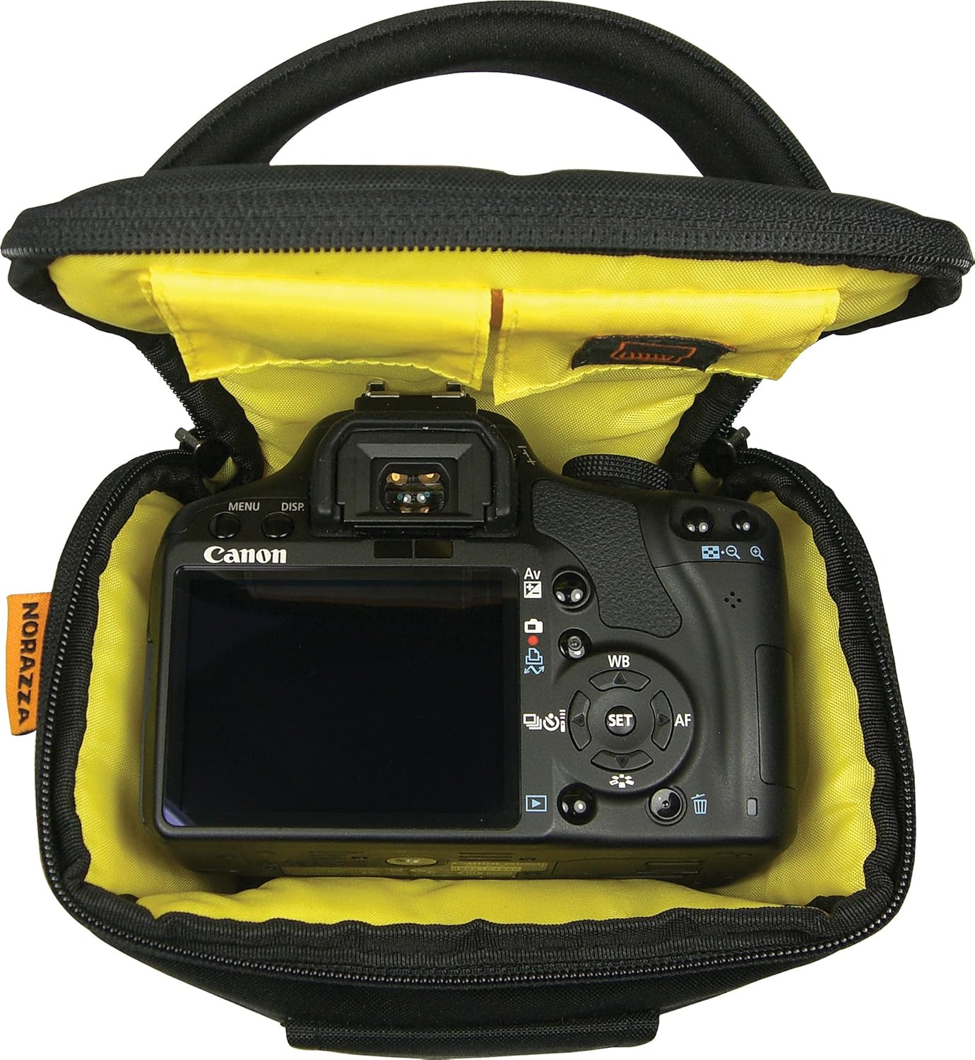Product Description The ACPRO600, compact DSLR holster case is the perfect solution for a person who does not want to carry around a bag, but wants to protect their camera. Designed to house compact DSLR’s with up to a four inch long lens attached. Ape Case holsters are made with ballistic black nylon. Featuring a removable, non-slip shoulder strap and a built-in retractable water-resistant cover. You have the ability to carry this holster 3 different ways; in your hand with the padded handle, attached to a belt using the belt loop, or with the shoulder strap. A large-mouth opening with dual zippers gains you access to the main compartment. This compact DSLR Holster case features our signature Hi-Vis Yellow interior to help find small items in low light. With extra front and interior pockets, you can store any additional media supplies and accessories with ease and convenience. Just pack it up and you're ready to travel like the pros. Ape Case Small SLR Holster Camera Bag ACPRO600 From the Manufacturer Ape Case Small SLR Holster Camera Bag ACPRO600