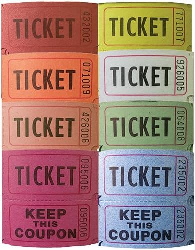 This is a full case of 20; 2-part ticket rolls with 2000 tickets individually numbered. Tear one part off and put into the raffle, and give the other stub to the customer for a confirmation. The tickets are soft colored so they remain easily visible. Color may slightly vary due to recycled paper.
