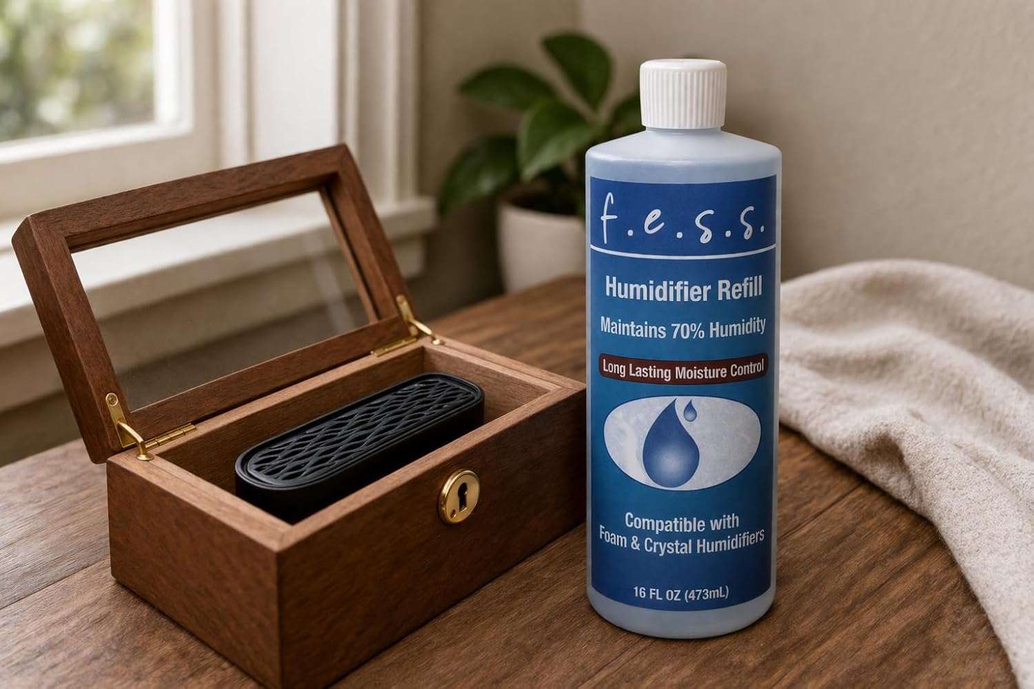 F.e.s.s. PG Solution for Cigar humidor automatically regulates humidity at 70%