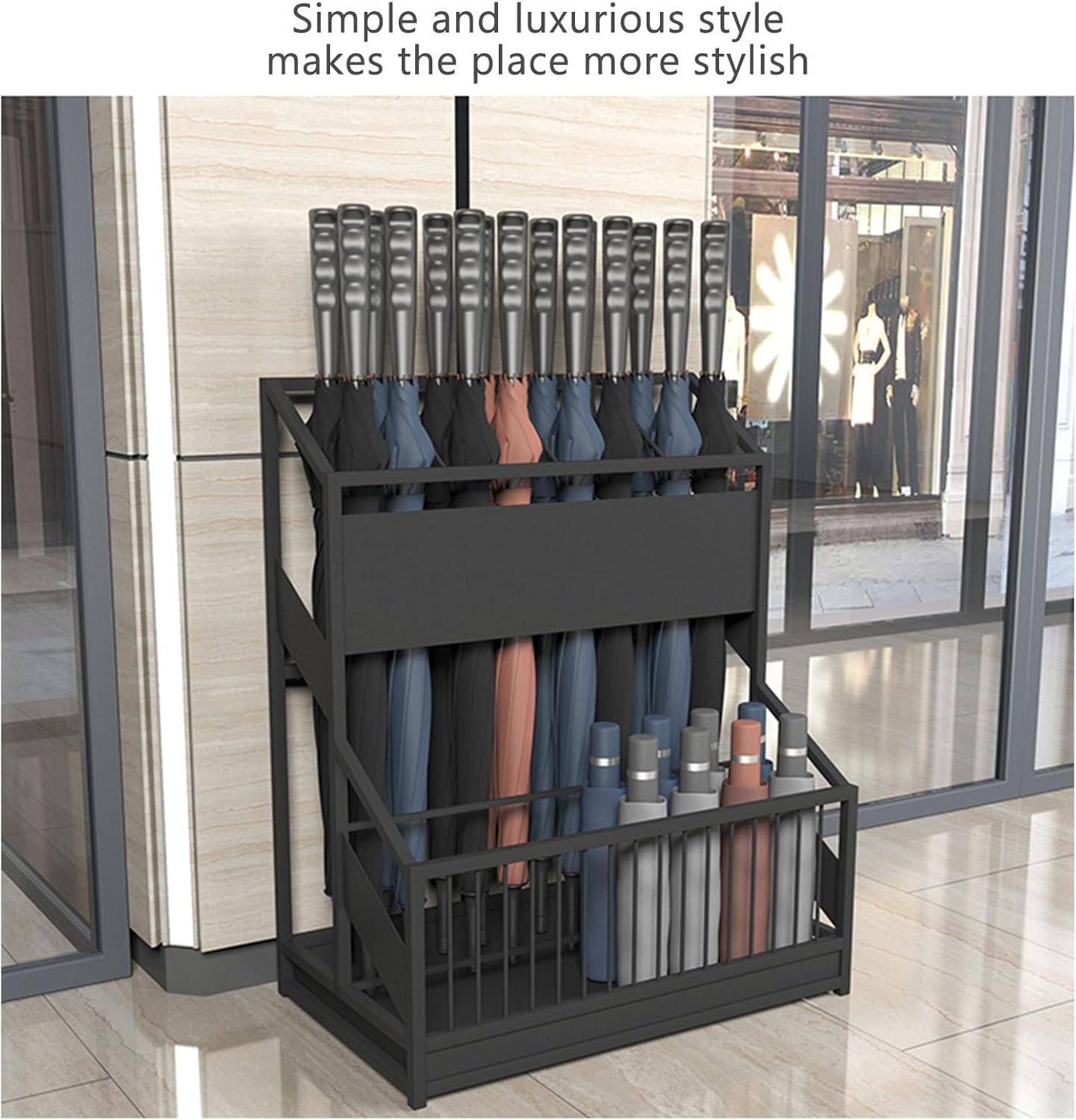 Introducing our large capacity double-layer metal umbrella stand, the perfect storage solution for both home and commercial spaces. Designed to elegantly organize and store multiple umbrellas, this robust stand helps keep your entryway, office, or retail space neat and dry, even on the rainiest days.**High Capacity Design:** The double-layer structure provides ample space to store and organize several umbrellas, making it ideal for busy households or high-traffic areas.**Stable and Durable:** With a sturdy base, this umbrella holder ensures stability even when fully loaded, keeping your umbrellas securely in place.**Product Name:** Umbrella Stand**Material:** Metal**Dimensions:** 48*27*58 cm / 19*10.7*23 inches, 68*32*70 cm / 27*13*27.6 inches**Color Options:** Black, Gold**Structure:** Frame constructionPlease note that product dimensions are measured manually, and there might be slight variations. Color differences may occur due to monitor settings and resolutions. If you encounter any issues upon receiving your package, please reach out to us.Enhance your space with our large capacity double-layer metal umbrella stand, the ideal blend of functionality, durability, and style. Keep your umbrellas organized and your floors dry, regardless of the weather conditions.