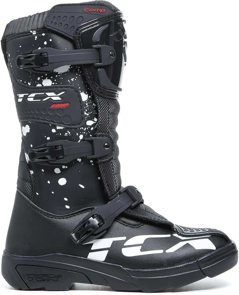TCX Men's Biker Boots Motorcycle Boat, Black White, 0.5