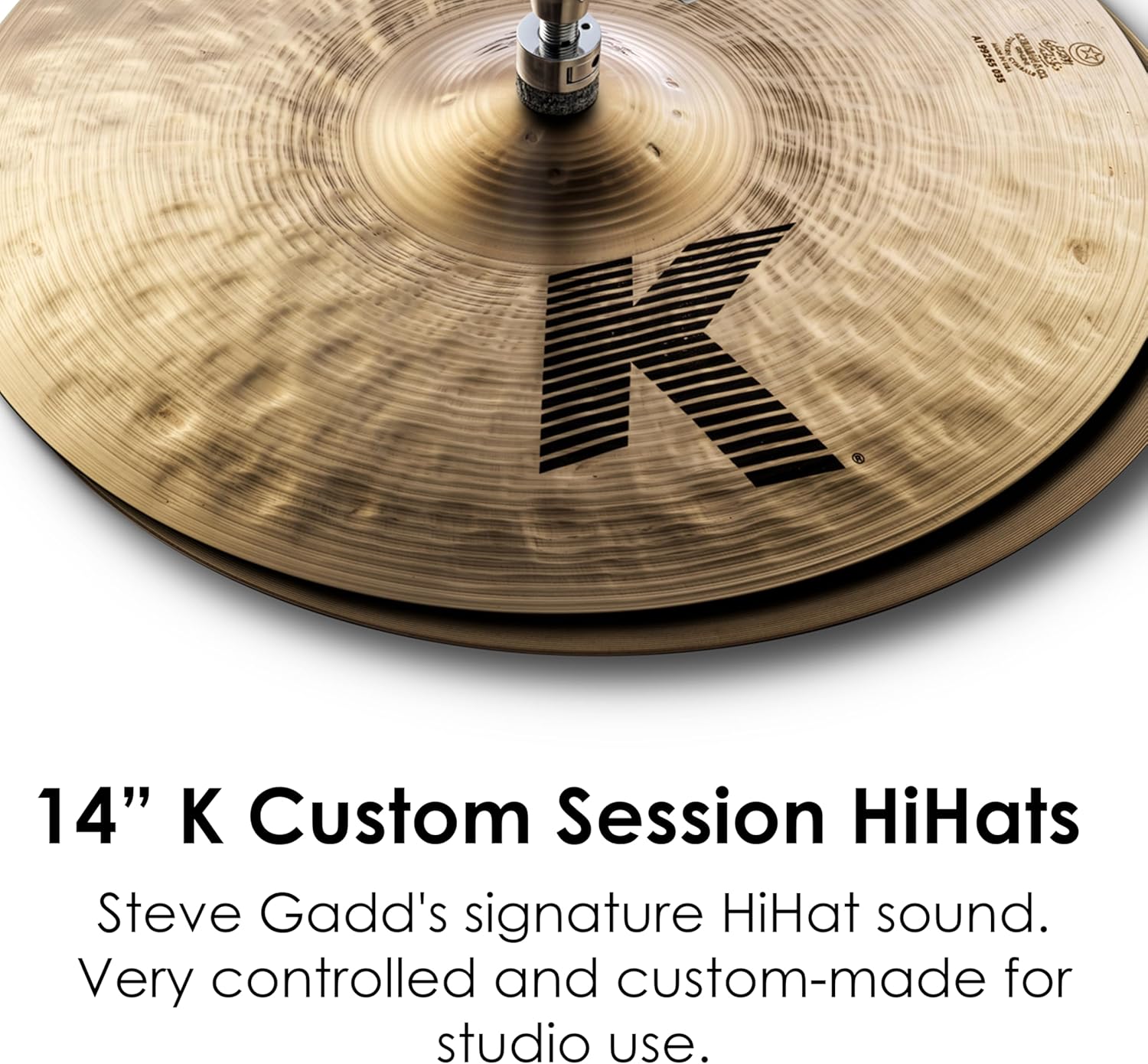 Session Hi Hats are a unique pairing, modeled after Steve Gadd's personal HiHats. They feature a slightly undersized (13 15/16"), medium weight top cymbal and a medium-thin bottom cymbal. These hi hats are built to be controlled and custom-made for use in the recording studio.